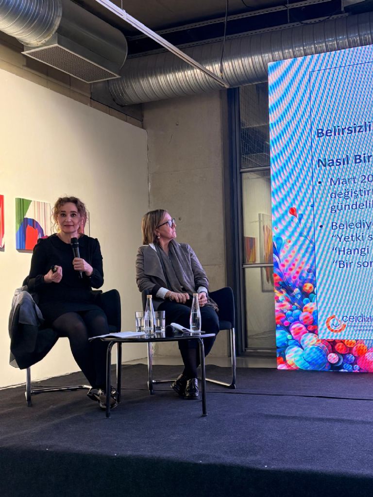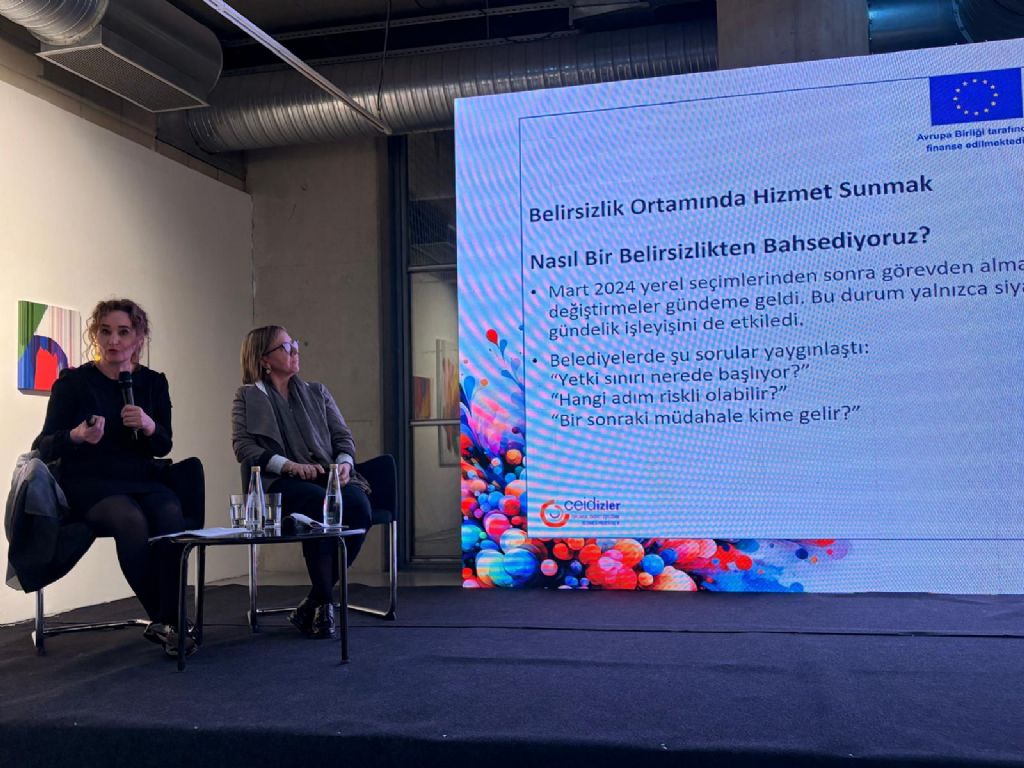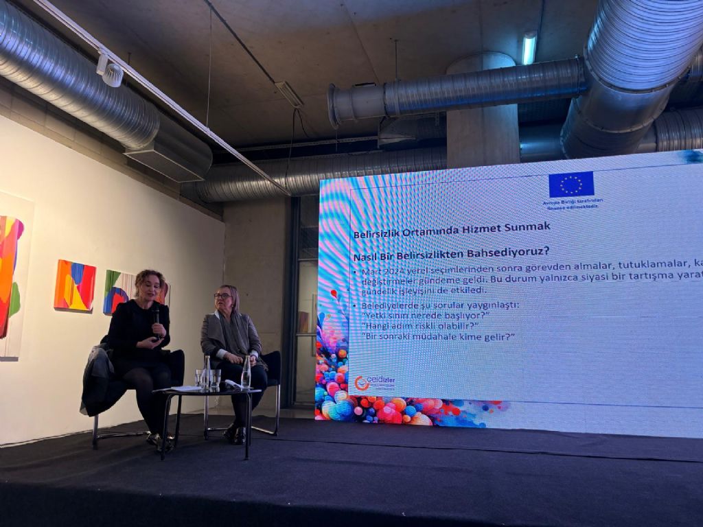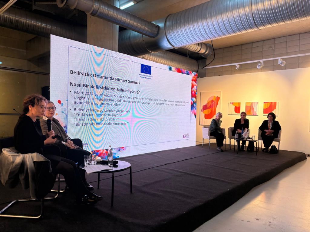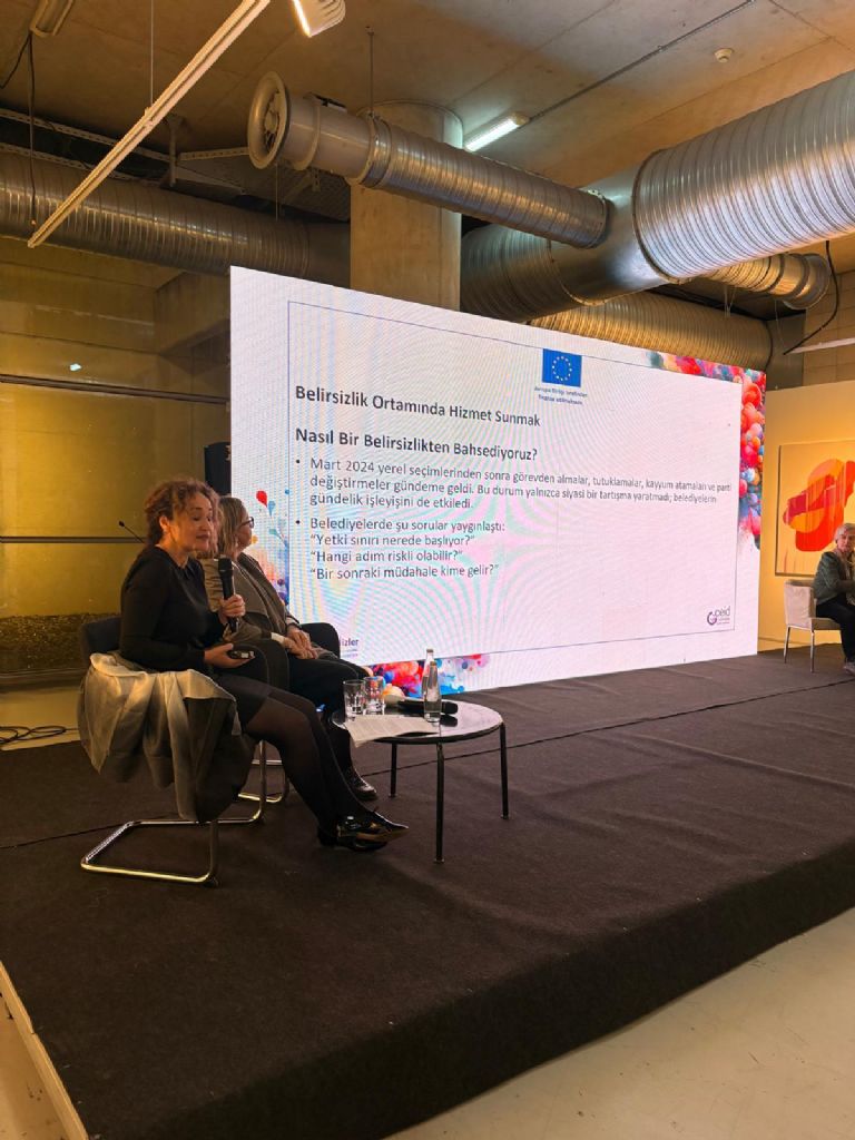 Ülker Şener ise “Belirsizlik İçinde Hizmet Sunmak ya da Cinsiyet Eşitliği Bağlamında Büyükşehir Belediye Hizmetlerinin Değerlendirilmesi” başlıklı sunumunda yerel yönetimlerde yaşanan siyasi değişimlerin belediyelerin çalışma ortamında belirsizlik yarattığını söyledi. Bu ortamda kurumların risk almaktan kaçındığını belirten Şener, bazı yerlerde “toplumsal cinsiyet eşitliği” yerine daha nötr kavramların kullanılmaya başlandığını ifade etti. Buna rağmen Birçok belediyenin eşitlik birimleri, sığınaklar, danışmanlık ve bakım hizmetleri aracılığıyla çalışmalarını sürdürdüğünü vurguladı.